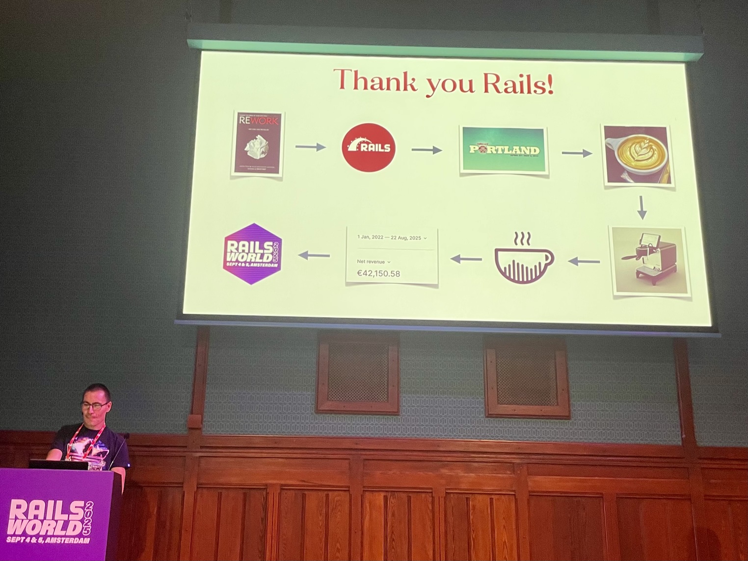 This time I was speaking at RailsWorld 2025. My first time giving a talk at an event of this magnitude. I’ve given many meetup talks but this is different. Also, the last time I talked in front of a few hundred people was before Covid, and that was in my home town. This is a long way of saying that this was a very, very big deal for me.